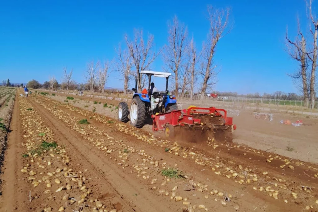 Además del requerimiento de agua, la papa se diferencia de otros cultivos extensivos por sus particularidades agronómicas. “No se hace en siembra directa, sino que requiere un laboreo previo del suelo, además de la profundidad a la cual se coloca el tubérculo semilla, que es de unos 15 a 18 centímetros”, detalló Walter. La cosecha también es mecánica y se realiza con una herramienta llamada “peludo o arrancador”, que invierte el pan de tierra para facilitar la recolección.